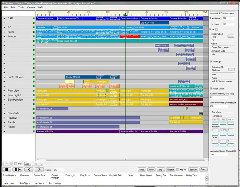 А после этого этапа слишком много усилий уже не требуется. Готовые анимации назначаются различным персонажам. Здесь художников очень выручает наш редактор роликов. С помощью этой программы аниматоры легко и точно назначают время и место каждого события в видео.