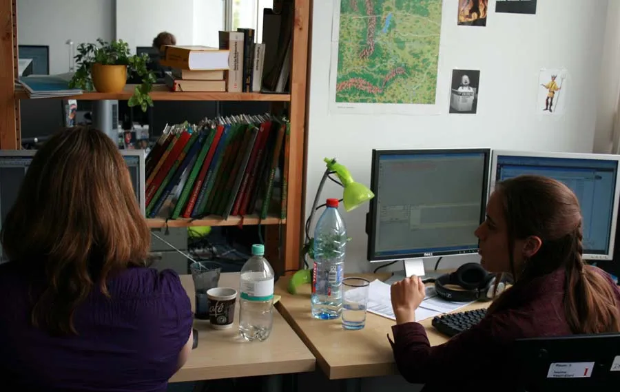 Конечно, так же важен постоянный контакт с другими отделами студии – например, с дизайнерами уровней. Ведь при всей свободе творчества нужно помнить о технических ограничениях. И важно определить, что можно воплотить в игре, а что нет. Часто от сотрудников других отделов поступают полезные предложения, которые помогают в итоге обогатить игру. Например, дизайнеры окружения хотят обратить внимание на некий пейзаж, имеющий отношение к миру DSA или просто исключительно красивый. Тогда сценаристы стараются подчеркнуть его дополнительно в литературной части, чтобы игроки точно ничего не пропустили.