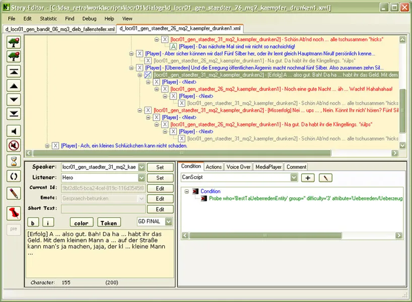 Но как именно происходит работа над уровнем? При разработке «Drakensang. Река времени» наши дизайнеры могли сами отправиться в плавание по Великой реке и своими глазами увидеть живописные места, которые могут рассказать немало интересных историй. Затем они отобрали наиболее понравившиеся локации или, например, те, к которым еще не было карты — и в таком случае они создавали целые города с нуля. При этом сотрудников, работавших над локациями, просили поделиться идеями историй, которые могли бы произойти в тех местах. Такие истории являются побочными квестами. Вы можете представить их как небольшие рукава «Реки времени». Но иногда побочные квесты являются совершенно самостоятельными историями. Около 60 % всей нашей игры составляют именно такие дополнительные истории.