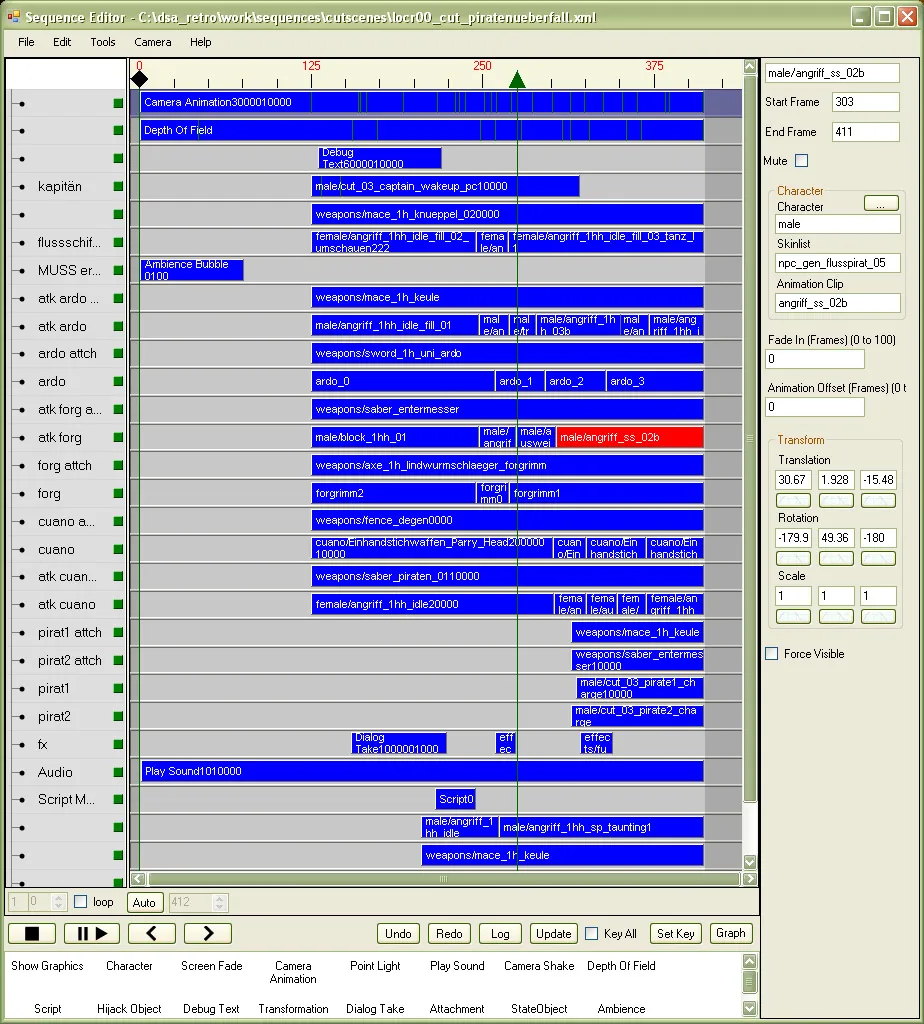 Еще одна новинка – наш редактор роликов. Над его созданием программисты трудились больше года. При разработке первой части Drakensang они не могли заняться им вплотную – ведь им предстояло создать технологию самой игры. С новым редактором видео стало «покадровым», то есть этот инструмент похож на современные программы для видемонтажа. Ролики больше не скриптуются, а создаются покадрово. В графическом редакторе на нескольких дорожках отображается все происходящее в ролике, и параллельно те же события можно отследить в игре. Так работа с видео стала легче и понятнее для художников, которые не всегда технически подкованы. Теперь художник может одним щелчком указать, в какой точке должно происходить некое событие и сразу же увидеть результат в игре. Это позволило нам создать более интересные и сложные ролики.