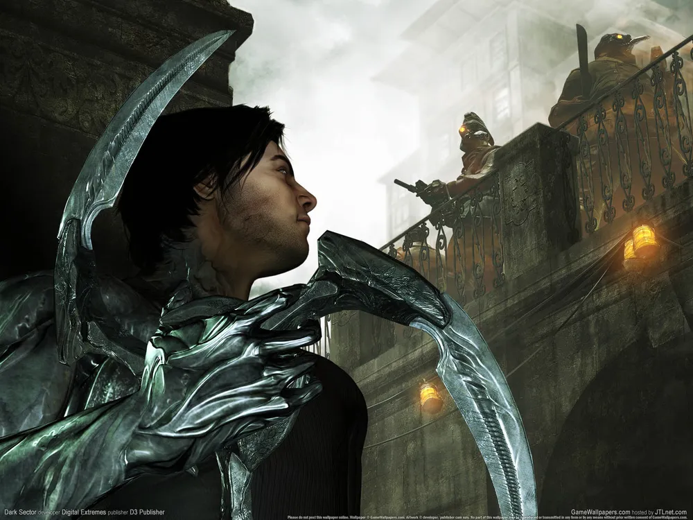 Наверное не для кого не секрет, что действие Dark Sector должно было разварачиваться на краю солнечной системы,и что в глав.персонажа были вшиты кибер-имплантаты и он мог управлять пространством, временем и др. В общем - научно-фантастический экшн от 3-го лица.