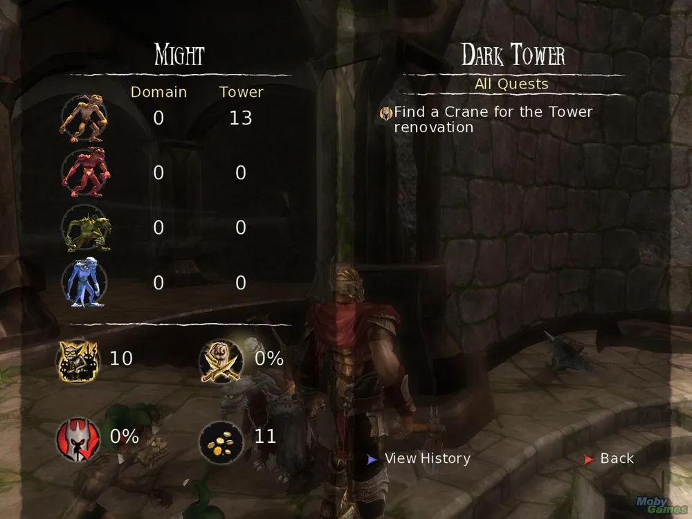 Знакомство с персонажами имеет место быть в старом разрушенном и разграбленном дворце. По мере того, как вещи вновь воцаряются на своих местах, изменяется и антураж Вашей крепости - появляются новые комнаты, настоящее царское убранство, а мана и здоровье постепенно увеличивают свой максимум.