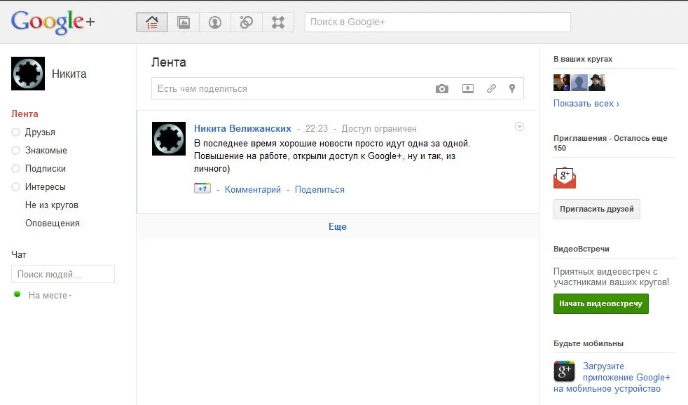 Добро пожаловать в Google+