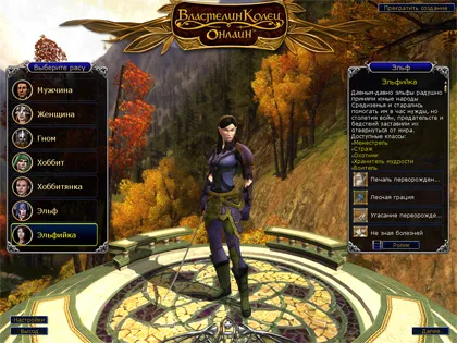 В онлайн игре «Властелин Колец Онлайн» оживают расы Средиземья. Вы можете играть за человека, эльфа, гнома или хоббита. Выбрав происхождение своего персонажа, задайте соответствующие ему цвет кожи, волос, глаз. Также вы должны выбрать один из семи игровых классов: Воителя, Стража, Взломщика, Рыцаря, Охотника, Менестреля или Хранителя Мудрости. Будьте внимательны – прочитайте описания игровых классов перед тем, как создать персонажа. Ваш выбор на этом этапе необратим, и определит весь дальнейший игровой процесс. Подробнее о доступных расах и классах вашего персонажа читайте в разделе Расы и Классы.