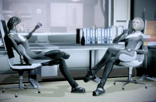 После того как Альянс блокирует Нормандию, и Шепард с помощью капитана Андерсона снимает блок и покидает Цитадель, доктор Чаквас в разговоре с ним скажет, что довольно странно ощущать себя "в бегах". Она также отметит, что экипаж корабля пожертвовал всем ради миссии капитана: