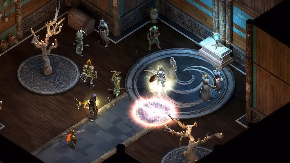 Но вернемся к нашим ограм. А также волкам, ящерам-колдунам, духам, големам и прочей фантазийной нечисти. Так уж сложилось исторически, что вся обитающая в Переходе фауна весьма кровожадна и норовит устроить вашей дружной компании веселенький карачун. Покидать облюбованные ими снега/руины/нужное дописать она будет крайне неохотно. Практически каждый бой оборачивается кострищем, в котором вам надо четко понимать, кого бить первым, а кого потом доковырять. Отвлечетесь — вас парализуют и убьют. Или сшибут с ног и убьют. Или прожарят заклинанием. И да, убьют. Настрой всему приключению задан в первые же секунды вашего появления в Сталварте: поселок приходится отбивать от огров. И это только начало.