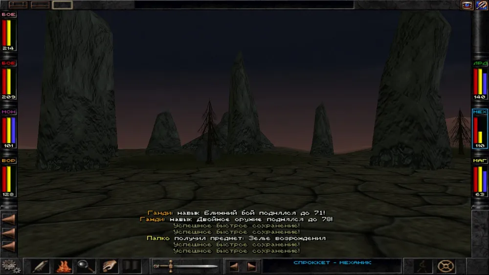 Путь к Пику Восхождения ведет через Дикие горы. В одной из пещер можно найти сражающуюся с рапаксами группу Ансельма. К "достопримечательностям" можно отнести курган с захоронением и водопад с тайником. Отсюда четыре дороги: в Северную глушь, на Пик Восхождения, в Юго-восточную пустошь и Ущелье рапаксов.