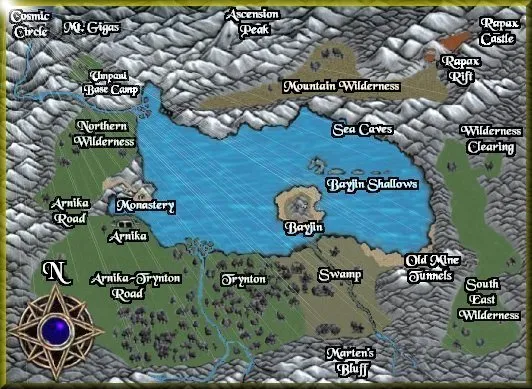 Остров во внутреннем море Доминуса стал местом обитания расы амфибий - ринжинов. Известно, что они поклоняются какому-то морскому монстру, предположительно Несси. Ринжины известны своей агрессивностью, поэтому это место совсем непопулярно у путников. Поэтому Морские пещеры, пронизывающие Бэйджин, были единственным местом, куда не рискнул сунуться Лунный Легион в поисках Мартена, а ведь именно там он и затаился, где провёл последние годы жизни.