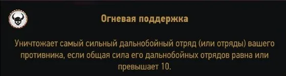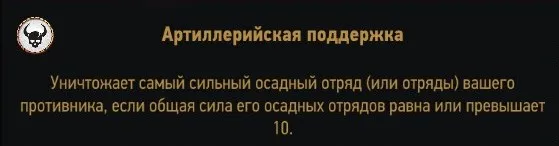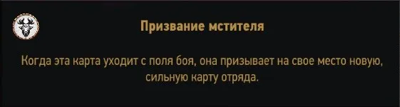 Кстати! Изначально иконки с такой особенностью не было предусмотрено, и об истинном назначении карты можно было узнать только использовав её в гвинтовой баталии. Иконка "призвания мстителя" появилась уже после выхода дополнения "Кровь и Вино", где есть карта "Камби" с такой же особенностью.