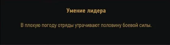 Умение лидера "Короля Брана": "В плохую погоду отряды утрачивают половину боевой силы". Ваши отряды, само собой, в плюсе, а противник-то страдает от катаклизмов природы по полной программе.