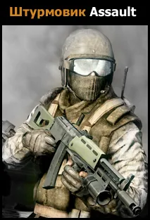 Основным атакующим звеном команды является штурмовик. Он вооружен автоматическим штурмовым оружием, которое позволяет нанести большой урон пехотным силам врага. Штурмовое оружие не что иное, как скорострельный автомат, с использованием поворотного затвора и автома-тической перезарядки на основе газового двигателя, который приводится в движение пороховыми газами, отводимыми через газоотводную трубку над стволом. Основным отличием от других клас-сов является то, что он может снабжать команду патронами, кинув ящик со снабжением на землю. Особо хорошо проявляет себя в командной игре с медиком и инженером. Имея на вооружении гра-натомет, устанавливаемый на основное оружие, несет в себе, серьезную угрозу для живой силы противника и легкобронированных транспортных средств. Во многих случаях может проложить новый путь для атаки, пробив в стене здания дыру, а так же лишить снайпера укрытия разрушив основание крыши, окна. При наличии в отряде медика, штурмовик превращается в почти не уязвимого бойца с безграничным боекомплектом. Данный класс незаменим при нападении на вражеские базы.