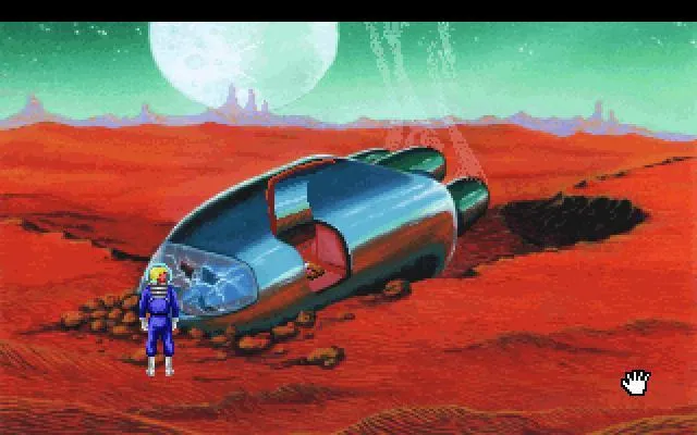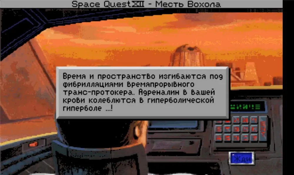 Время побежало вперед с огромной скоростью, и Роджер попадает в эпоху Space Quest XII. А заодно он совершил и пространственное перемещение. Местность кажется знакомой. Точно - это Ксенон! Причем одновременно более совершенный и разрушенный, чем его знает Вилко.