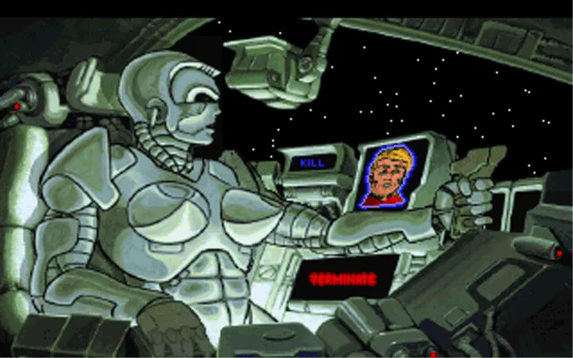 Бой проходит по комбинации правил игры Меха-битвы с Rock 'Em Sock 'Em Robots стиля. Одержав верх в этой гремучей смеси, Роджер сбегает вместе со спасенными парнями с Андромеды на своей "Алюминиевой утке", попутно отстрелявшись от преследования. Программисты починят движок корабля Роджера, и вот в результате скачка, на огромной скорости они попали в чёрную дыру. К счастью их выбросил на орбиту планеты Земля. Там Вилко доставляет андромедян в офис компании Sierra On-Line и передает их лично на попечение директора студии Кена Уильямса.