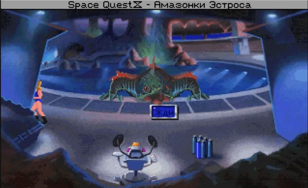 Space Quest X. Да, стоит осмотреться... Не тут-то было - здесь Вилко подстерегали воинственные амазонки с Эстероса. Их предводительница обвинила Роджера, что тот бросил её у алтаря и сбежал со свадьбы. Какие новости! Оказывается он охмурил красавицу - ещё бы, такой видный герой, орёл-мужчина. Но в ответственный момент повернул обратно. И вот теперь неотесанного самца хотят наказать за это.