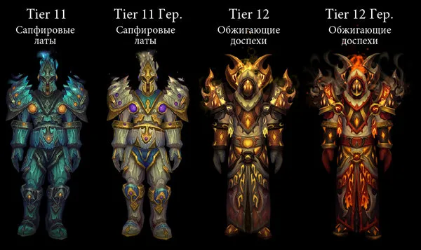 Дизайнеры попросили создать комплект брони, соответствующий призываемому паладином стражу древних королей, и мне показалось, что «оперенная» броня, выполненная из золота и серебра, создаст агрессивный и одновременно стремительный, мощный образ. Многие части прошлого рейдового комплекта для паладина были ткаными; новому же комплекту нам хотелось придать вид пластинчатой брони.