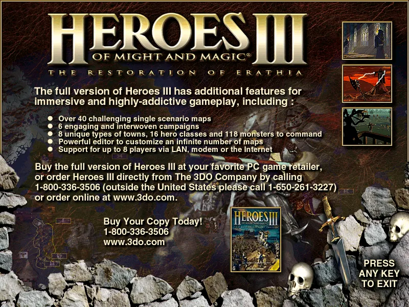 Представляю всем желающим играбельную демо-версию «Героев Меча и Магии III: Возрождение Эрафии». В данной версии существует ограничение на 28 игровых дней (ходов).