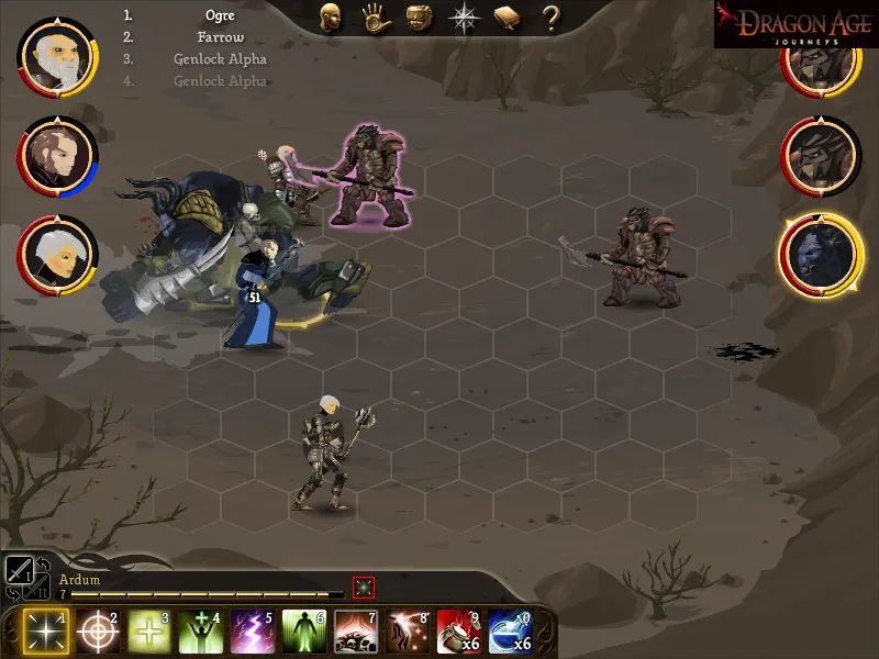 В сердце Dragon Age Journeys: The Deep Roads лежит тактическая RPG. Мы использовали боевую систему, основанную на хексах (шестиугольниках), как в серии Heroes of Might and Magic, но вместо огромных армий под вашим началом до трех героев с системой характеристик и деревьями талантов, взятыми напрямую из Dragon Age: Origins. По ходу игры эти герои получают опыт, набирают уровни, изучают новые таланты, находят новый лут... тут есть все знакомые элементы RPG. Все это позволит вам развить своих героев до таких высот, что вы сможете противостоять таким монстрам как альфы генлоков (Genlock Alphas) и огры (Ogres).