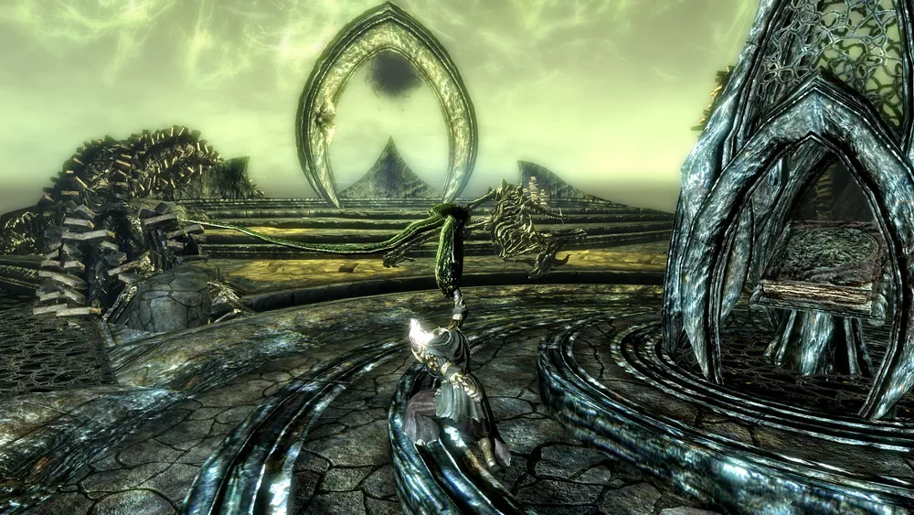 После её прочтения нас переносит в Апокриф – местный реалм Хермеуса Моры, очень скользкого типа, которого можно было встретить в Скайриме. Мирак замечает чужака и сразу ставит нас на колени и начинает бахваляться своими достижениями. После этого он улетает, а его миньоны с помощью каких-то волн отправляют нас обратно в Солтсхейм. На этом квест заканчивается.