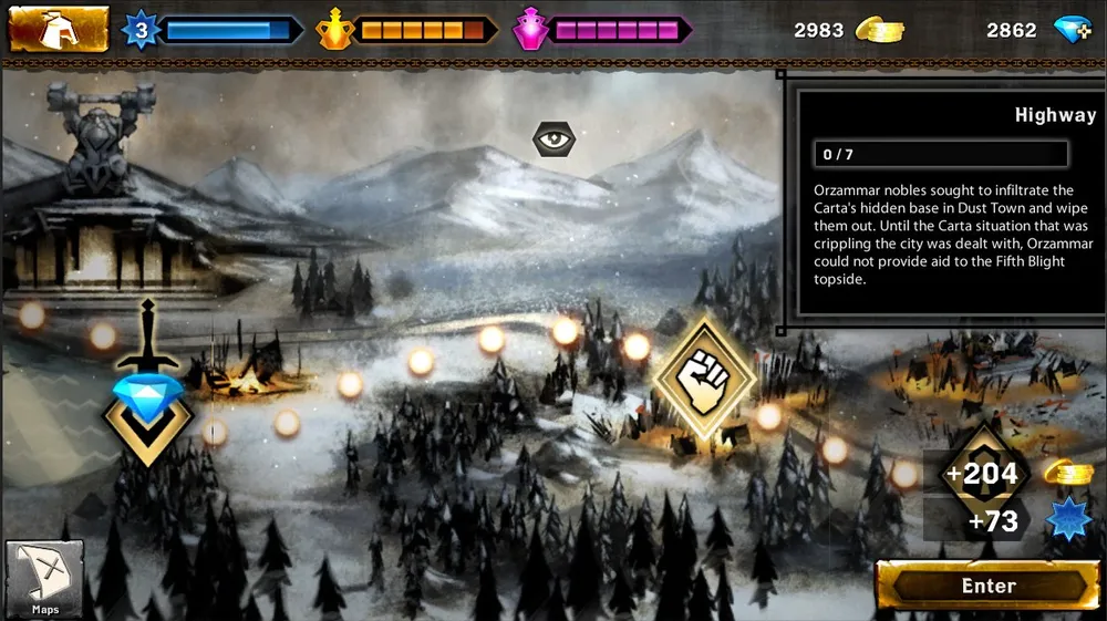 С партиями тут весьма интересная история. В игре имеется несколько сотен различных персонажей, от нагов до главных героев серии, которых можно объединить под своим началом. Делятся они на пять категорий: обычные, необычные, редкие, эпические и легендарные. Получить их можно покупая в магазине сундуки, которых тут три типа: стоимостью 350 золотых, 1500 золотых и 38 бриллиантов. Бриллианты выпадают за X-кратное прохождение определенного этапа или приобретаются за деньги.Также имеется возможность один раз приобрести сундук, из которого гарантированно выпадет один эпический персонаж, но тоже за реал.