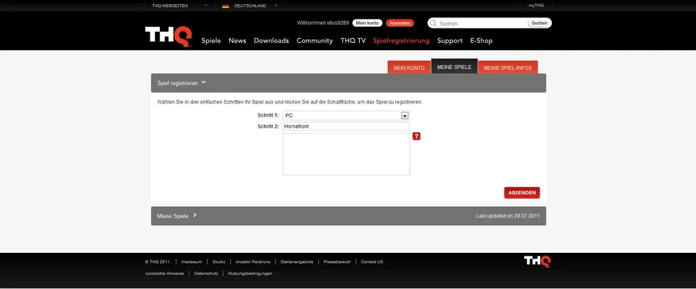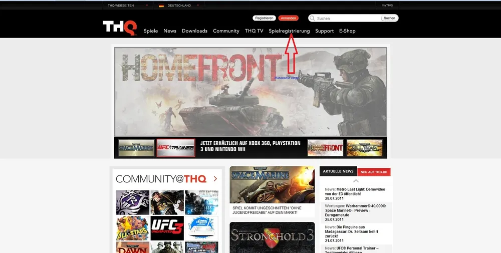6) Снова нажимаем Spielregistierung, появятся два окошка,в первом выбираем PC, во втором Homefront, нажимаем Absended.