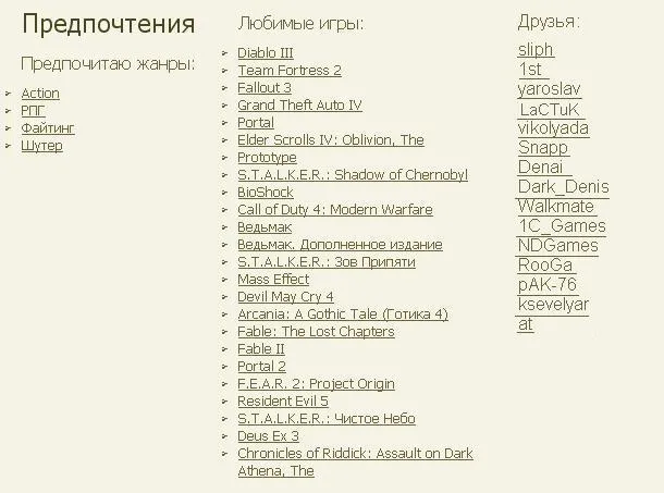 Предлагаю в дополнение к "Интересуется пользователями" и "Он интересен" добавить еще пункт "Друзья". Для добавления в этот список необходимо, что бы пользователь послал приглашение своему другу, а тот подтвердил. Реализовать можно было бы через ЛС: