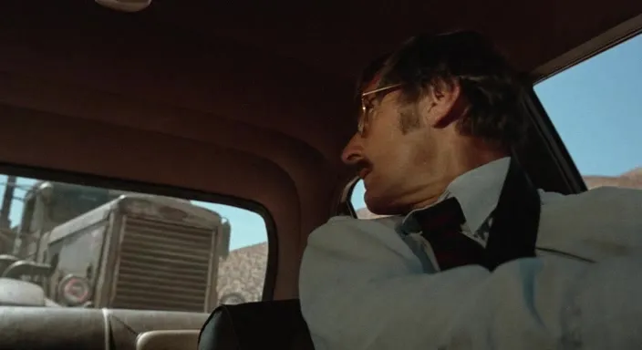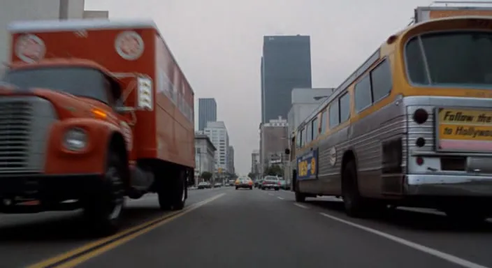 Моё знакомство с этой картиной впервые состоялось также по телевидению — в 90-е по ТВ показывали множество разных фильмов и сериалов, причём в основном ещё старых. Постепенно обновляя расписание трансляций на более современные ленты - можно сказать, получился экспресс-культпросвет. Действие всего фильма протекает в ясные солнечные дни, но история такова, что кино запоминается как мрачное. И это его как-то даже роднит с холодным "Терминатором" — опять же в обоих случаях речь идёт об угрозе от гораздо более страшной силы, почти неуязвимой. К тому же водитель грузовика так и остаётся тайной фильма, потому легко наделить грузовик некой самостоятельностью — будто это очередной робот. В общем-то в детстве у меня эти фильмы как-то были переплетены в сознании, хотя я их нисколько не путал. Но что-то их объединяющее было в настроениях, впечатлениях...