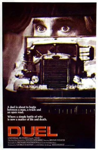 «Дуэль» (англ. Duel) — американский телефильм 1971 года. Я бы сказал, этому кино присущи хичкоковские мотивы. Это не ужастик в полном смысле слова, но некая тревожность и страх присутствуют — в основном из-за загадочности мотивов происходящего (то бишь задействован самый распространенный страх — страх перед неизвестным, непонятным).