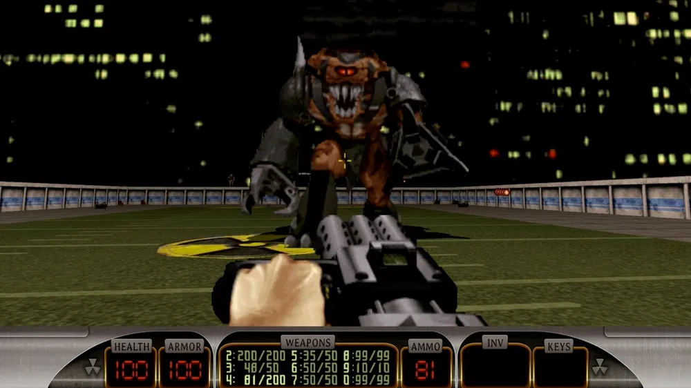 ОригинальныйDuke Nukem 3D вышел стараниями студии3D Realms в1996 году. Видеоигра была выпущена в модном и ныне жанре шутера от первого лица. В то время как первые две части Дюка Duke Nukem 1,2 – были двухмерными бродилками. Третий Дюк мгновенно обрел популярность и свою армию преданных фанатов. Мы сражаемся с нашествием пришельцев, и начинается все в скромном Голлливуде - Холокост в Голливуде, так называется первый уровень оригинальной видеоигры. Главный герой – типичный накаченный тип из кинобоевиков , поэтому ждите позерских, модных фраз и тяжелого рока в качестве звуковой дорожки к действию!