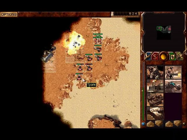 Всё остальное можно отнести к разряду тех или иных деталей, которые сразу не припомнить и нельзя сказать, что они обладали явной ценностью. Например, специальные возможности каждого из Домов. Атридесы привлекают на свою сторону фрименов, по сути разновидность пехоты. В оригинальной игре отряды фрименов появлялись в случайном месте игровой карты и действовали самостоятельно под управлением ИИ. Видимо появление "резиновой рамки" подтолкнуло разработчиков к мысли вручить управление фрименами игроку. На мой взгляд первоначальная концепция была интереснее, так как игрок знал, что вызов фрименов хотя бы немного отвлекает силы противника, и можно готовить атаку своими основными силами не заботясь об управлении фрименами.