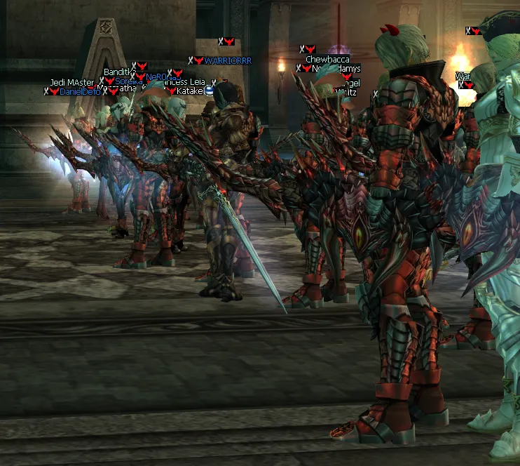 Уверенный в себе DvP редко брал с собой партию (у него у одного из первых PvP ориентированных игроков на сервере был афк хайлвл суппорт), а если и брал, то бежал далеко впереди группы (что бы фраги не сличили). А как тут сличишь, когда красная машина с + 7 S луком (на сервере то S луков было раз два и обчелся) с полным комплектом уникальной бижутерии и огромным (по меркам сервера) уровнем с одной подачи уносило любую робу и с пары подач дагера или лука. Спастись мог только хевиарморщик и то по BSOE, если не пройдет ++++ стан. Само появление dvp на поле бое в дейлипвп или при защите/штурме замка внушало уверенность и защиту; лично у меня было чувство благоговения перед ним, потому что я знал - меньше двух, трех десятков фрагов за бой, только это парень, взять не сможет, а сможет только больше, 100% сможет!