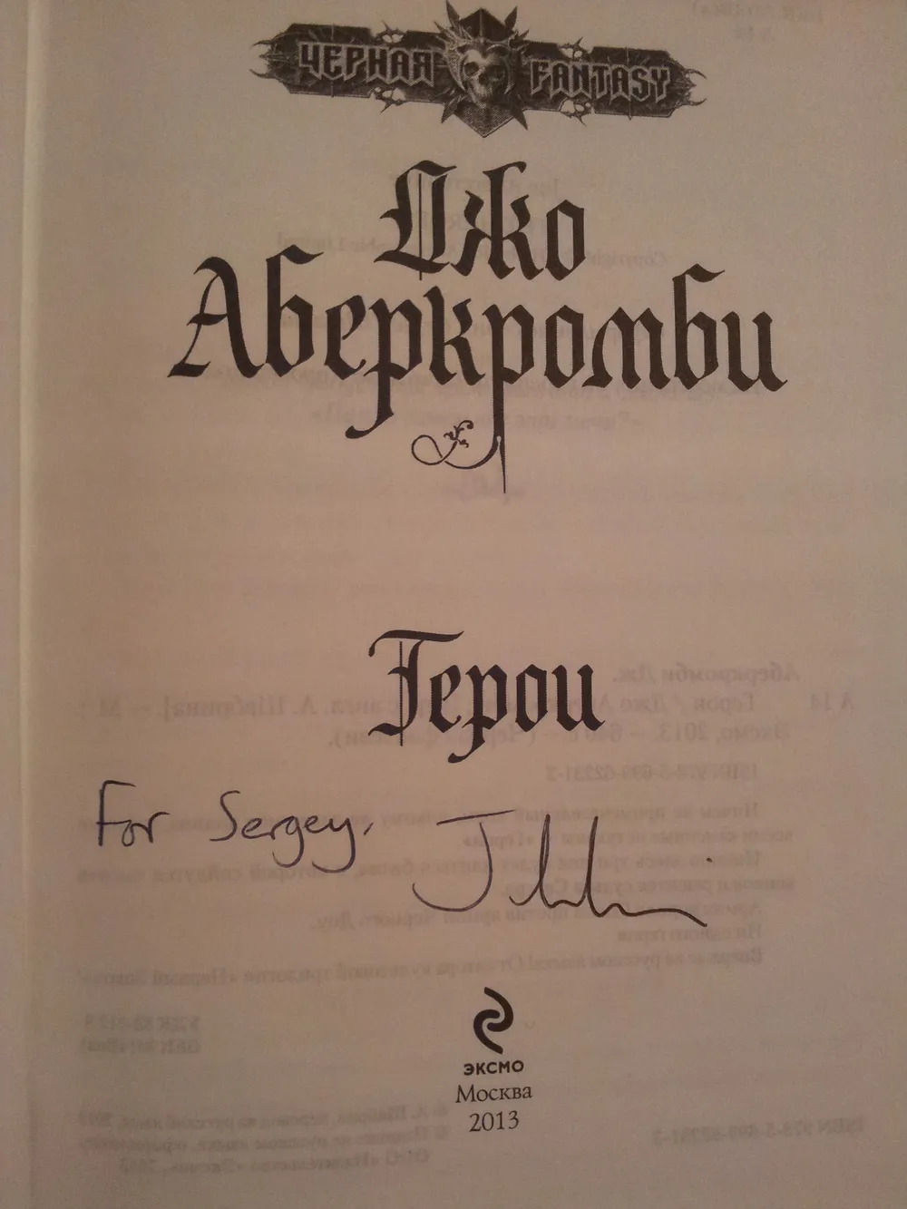 Так же нам стоит в ближайшее время ждать сборник рассказов о героях Первого закона, еще одну трилогию, и возвращения Джо в Петербург на Еврокон 2015.