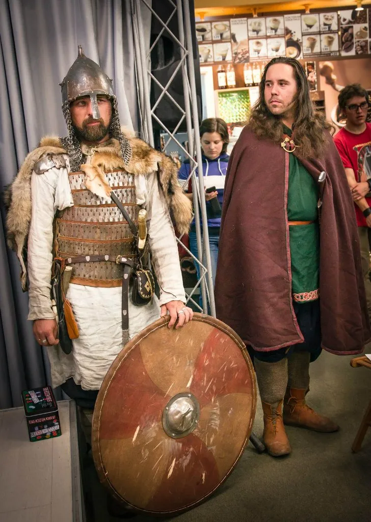 Пришли организаторы, потом пришли 3 человека в кованной броне. Вконтакте был конкурс на самый лучший кастинг, так что фанаты пришли в полном вооружении.