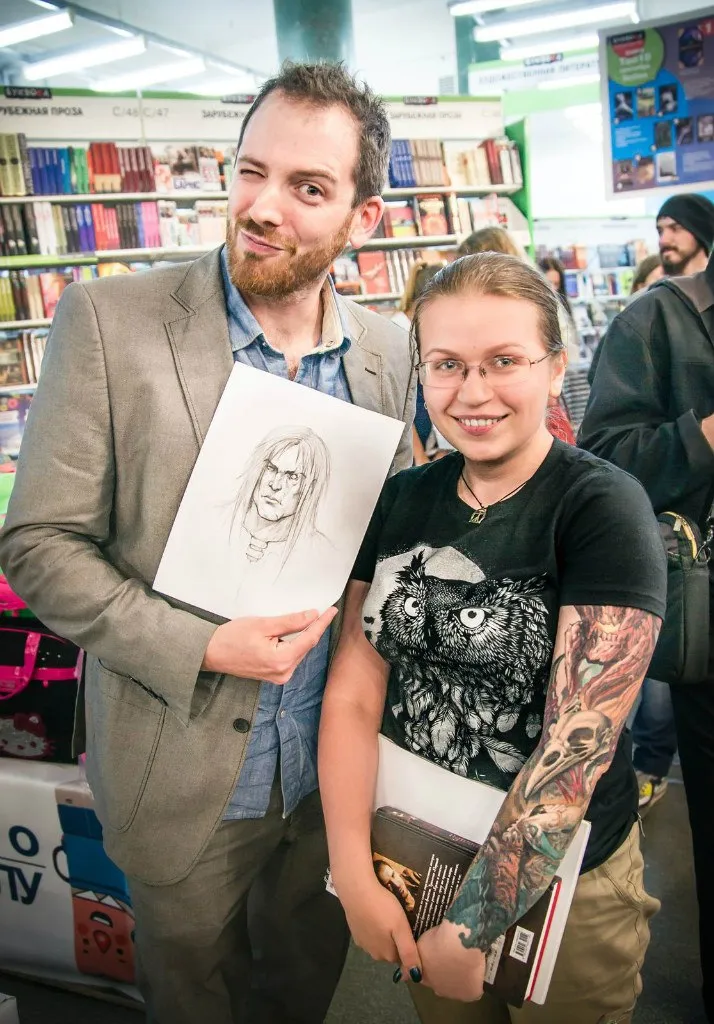 Он просто супер! Когда пришло время раздавать автографы, я подошел и чтобы не мучить человека, говорю "Юджину". А он подписал - Евгению! Попросил сфотографироваться - пожалуйста! Спасибо ребятам с нашего форума, помогли, сфоткали. Лучший автор фэнтези в мире и я -о-о-о Круть!