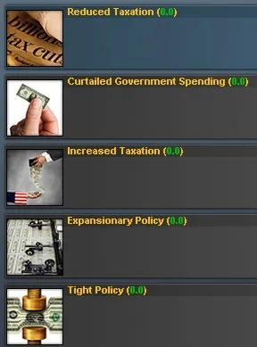 Но все это делается не для пустой показухи. Мы также сосредотачиваемся на наполнении и фактическом содержании. Отличный пример – политика, которая заменила собой знакомых вам министров из «Дня Победы 3». Игрок может в течение игры выбирать различную политику в зависимости от состояния правительства. Эффект некоторых политик совершенно очевиден, а некоторых – нет. Нашей задачей было подобрать правильные картинки, помогающие вам понять принцип политики.