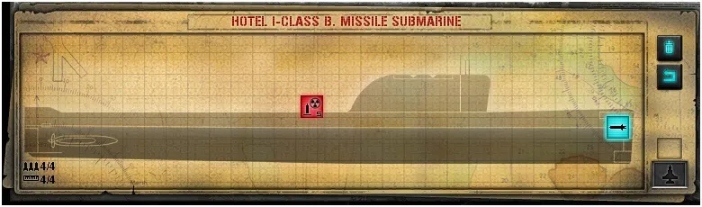 Для начала, смертоносная атомная подлодка. Оружейные слоты подлодок содержат торпеды, наводящиеся и баллистические ракеты. Также это единственное судно, которое может носить ядерное оружие.