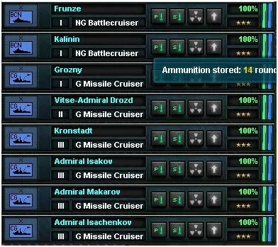 Орудия ближнего боя не потребляют никаких боеприпасов, только организацию самого корабля. В терминах игры морская организация означает защитные способности корабля. Без нее корабль беззащитен, и весь полученный урон будет наноситься непосредственно по силе (Strength) корабля. Некоторые классы (например, многоцелевые основные корабли) могут использовать и главные, и вспомогательные склады. Меньшие корабли используют что-то одно или ничего. Эта система открывает перед игроком множество настроек, но без микроменеджмента с назначением боеприпасов каждой оружейной системе. Если боеприпасы закончатся, корабль отправится в ближайший порт за пополнением, потребляя военные припасы. Ядерные ракеты на субмаринах соединены с общим числом ядерного оружия вашей страны. Хотя мы сделали разные виды боеприпасов, мы хотим, чтобы вы сосредоточились на строительстве флота, отдавании им приказов и применении их в нужное время в нужном месте. Итак, теперь у вас есть потрясающие корабли, и только представьте, что может быть лучше, чем наконец принести коммунизм нетерпеливо ожидающим французским гражданам! Время отправлять флот!