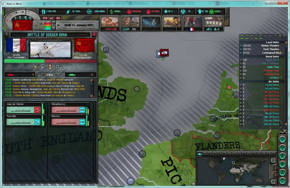 Начнем с того, что стратегии флота были разработаны на основе исторических доктрин обеих супердержав: НАТОвской доктрины авианосных групп и упора на надводные и подводные ракетные соединения стран Варшавского договора. Флот НАТО опирается на мощь суперавианосцев, подлодки и ПЛО, в то время как Советский флот разработал очень эффективные соединения ракетных кораблей и субмарин с главной целью – уничтожение авианосцев НАТО. Поэтому для отражения исторической роли обеим сторонам были выданы уникальные войска. Кроме того, миноры также могут получить маленькие, но эффективные корабли, например, ракетные лодки или фрегаты. Так что ожидайте, что даже самые маленькие нации будут больно жалить – они без колебаний будут защищать свои территориальные воды.