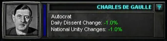 В любом случае, у выборов есть главная цель – решить, кто будет главой государства или правительства в вашей стране. Эти самые важные государственные деятели представляют правящую партию и государство; они будут привычны тем, кто играл в «День Победы» раньше. У них есть черты, влияющие на определенные аспекты игры – политические, экономические или военные. Некоторые из них очень полезны, некоторые – настоящее проклятие, ограничивающее круг возможных политик или законов или заставляющее вас принять политику, ведущую к недовольству.