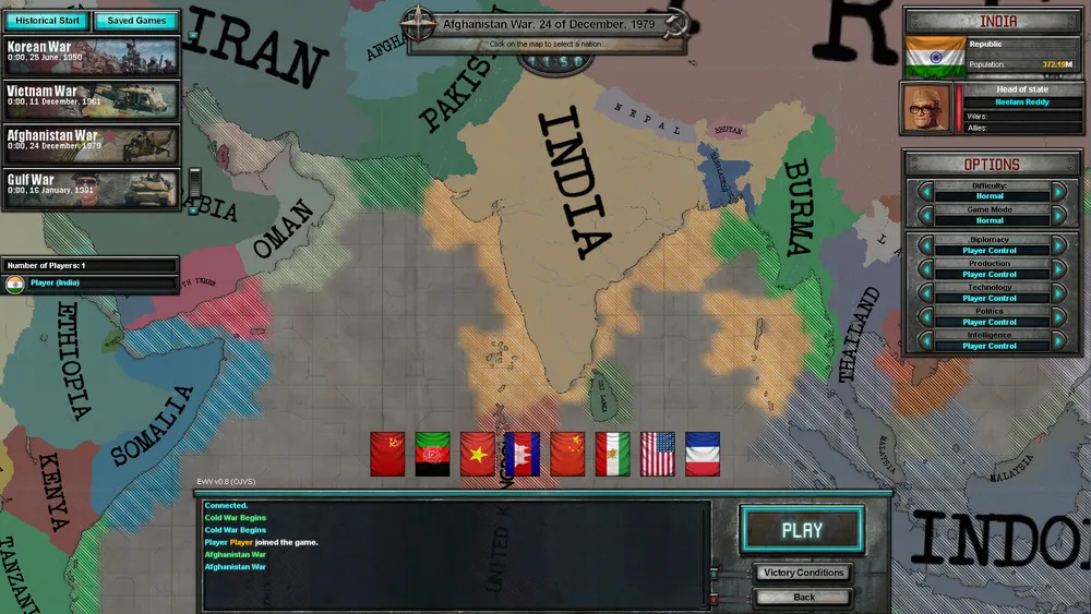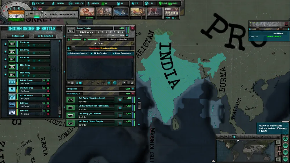 В 1979 у Индии было 1.3 миллиона солдат в 382 бригадах, а у Пакистана, лежащего сразу за границей, 500 тысяч. Кажется несправедливым? Не волнуйтесь, вы можете это исправить! Эти цифры убедят кого угодно в близости тотальной войны, и это уже было в случае с Индией и Пакистаном три раза за историю. Однако на самом деле Холодная война была длинным периодом относительного мира во всем мире, особенно если взглянуть на большие войны между странами. Приведенные выше цифры на самом деле просто общий размер какой-либо ветви вооруженных сил. В реальности только 62% из 1.3 миллиона индийских солдат (или 223 бригады) были в состоянии боеготовности; остальные 149 бригад находились в резерве. Это те различия, которые мы делаем, чтобы "East vs West" не превратилась в фентезийный варгейм.