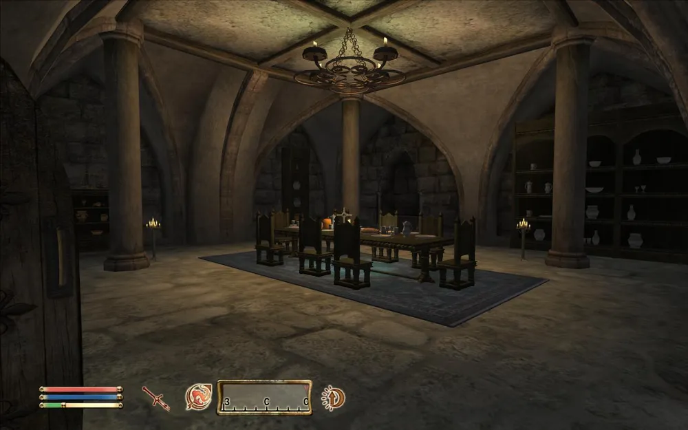 К сожалению во все комнаты меня не пустили, так что пришлось довольствоваться только главной залой. Обставлена она была хуже, чем у магов, зато имелось несколько артефактов за стеклом. Оценить мне их не удалось, зато осталось их изображение на память.