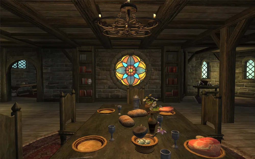 2 этаж был большим и шкафы с книгами были разбросаны по углам, а в центре стоял обеденный стол.