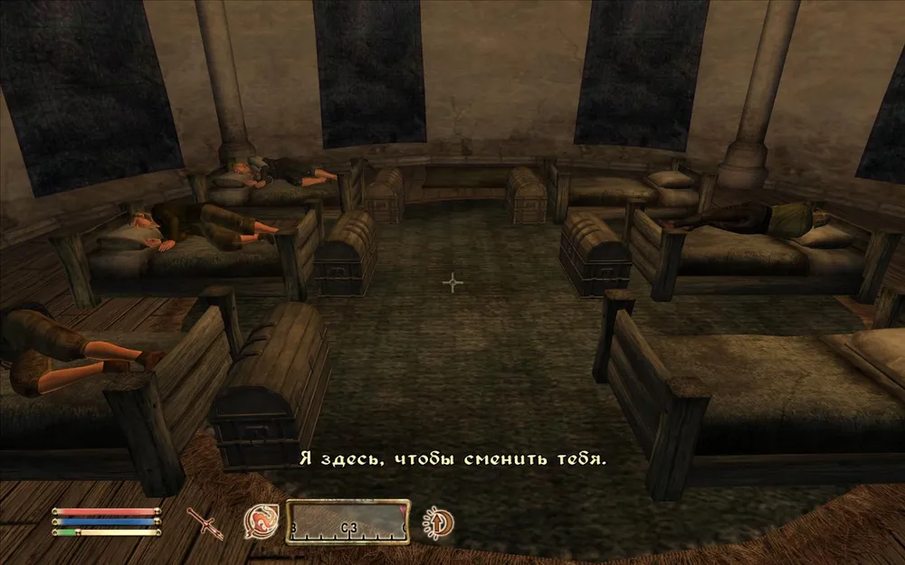 Но что самое удивительное, так это то, что кроватей всего 6. А казарма 1. Остальные стражники похоже спят в башнях, но меня туда не пустили. Взятка не помогла