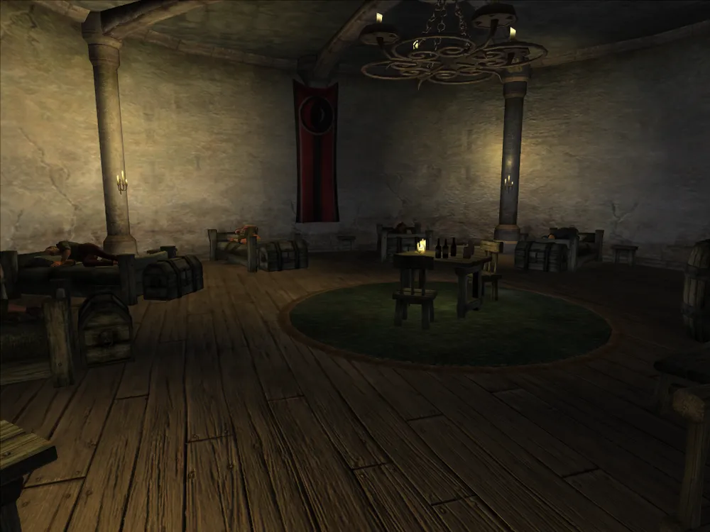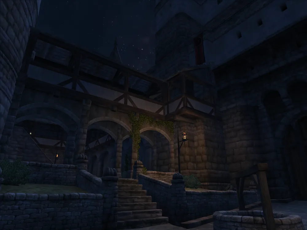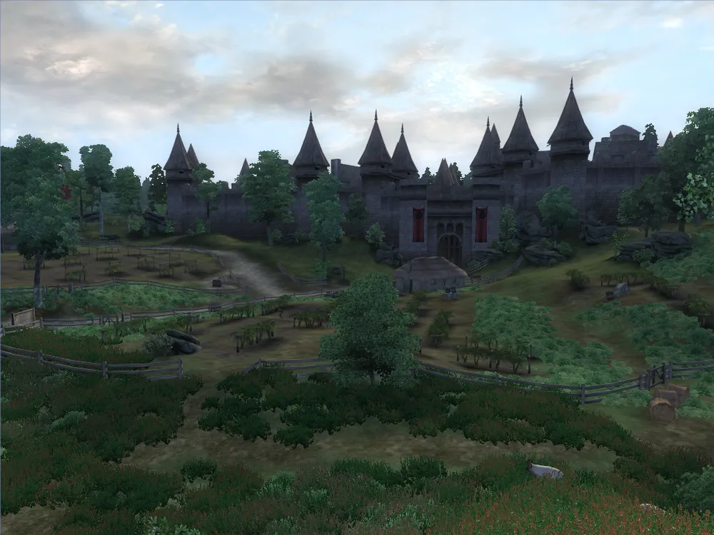 Замок находиться недалеко от города на холме. Замок большой, но там мало людей. Двор ведет в зал для приемов, темницу, казармы и покои.