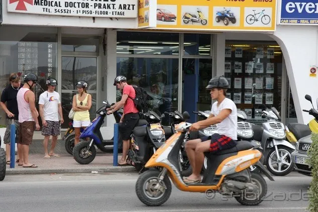 Для независимого перемещения по островам прекрасно подойдет и мото-вело техника. Прокат мотоцикла или скутера подразумевает принудительно-обязательное использование шлемов (целее будешь!). Самый доступный мотоцикл стоит около 21 евро за день проката, а скутер потянет на 17 евро. Следует учесть, что для подобных прогулок вдвоем по холмистому острову Ибица, потребуется аппарат с двигателем не менее 100см3 в объеме.