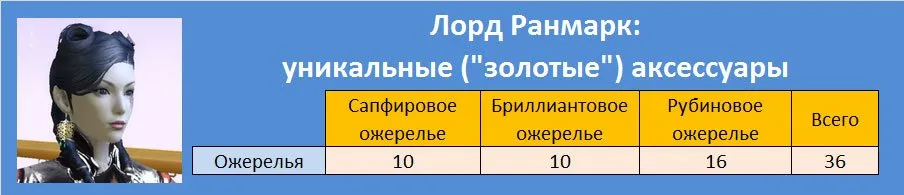 Мы также сохранили записи об уникальных аксессуарах и легендарной броне, добытой из сокровищниц лорда Ранмарка. Но поскольку эти цифры профсоюз не запрашивал, помещаем их в приложение.