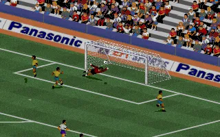 В девяносто пятую часть я играл уже в каком-то зассаном подвале, где стояли разного калибра телевизоры, а к ним были подключены доступные не всякому Sega Mega Drive 2. Мы шпилили на них во всякую муть (но в основном, конечно, Comix Zone и Mortal Kombat 2), но иногда пуляли и в футбольчик. Вот такой он был: