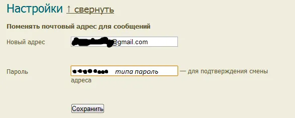 Далее нажимаю на кнопку "Сохранить" - страница обновляется, и о чудо, мое мыло изменено, в поле прописано мое мыло! Но спустя какое-то время я заподозрил странную вещь, что ни на один адрес не пришло какое-либо подтверждение. Тут я, значит, шурую обратно в профиль и вижу свой старый адрес! В общем, негодую.