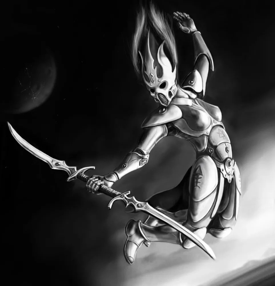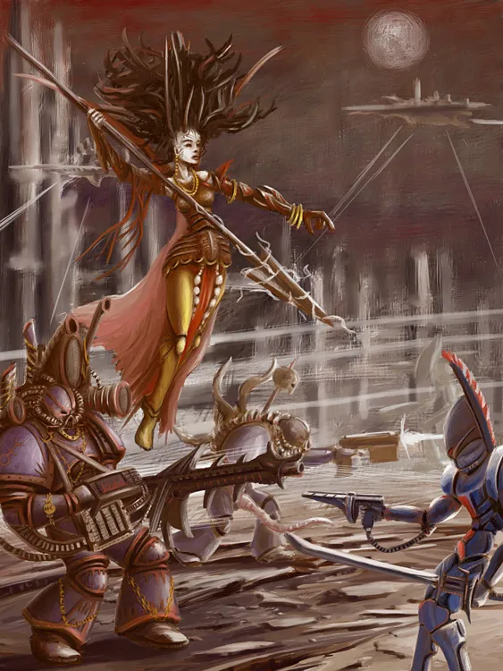 Повествование об эльдарских арлекинах и персонажах, а также вторая часть подборки оставшихся артов (внизу под спойлером).