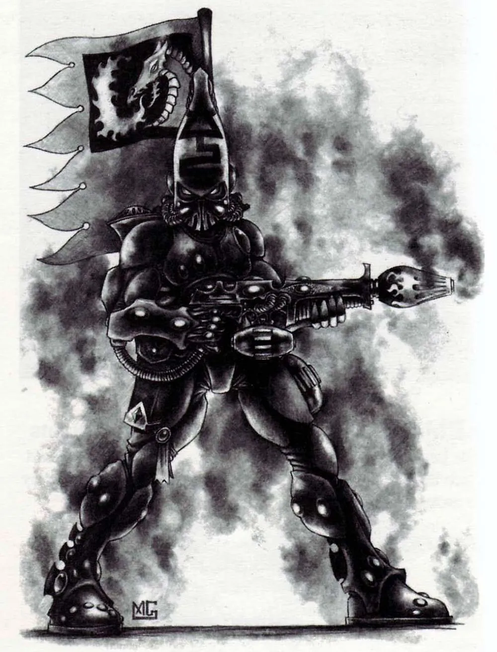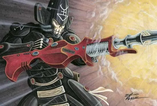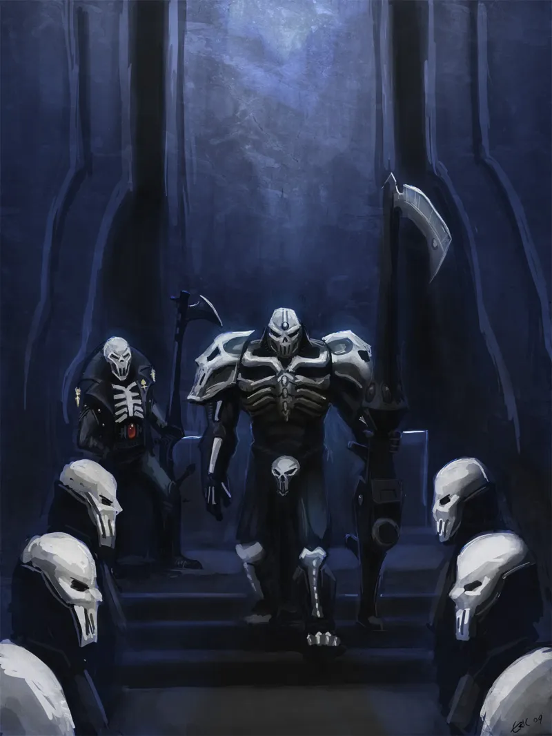 Когда Асурмен обучил своих собратьев искусству войны, именно Моган Ра наиболее отдалился от учения. Он сделал изящные орудия мистической природы; не клинки, как его собратья, но тёмные и зловещие артефакты, разившие его врагов издалека. Совершенствуясь, Моган Ра познал, что даже самое мощное оружие можно применять с изяществом скальпеля. Это привело к созданию Могетара, также известного как «Пожинатель», и, позднее, к выработке доктрины Аспекта Тёмных Жнецов.