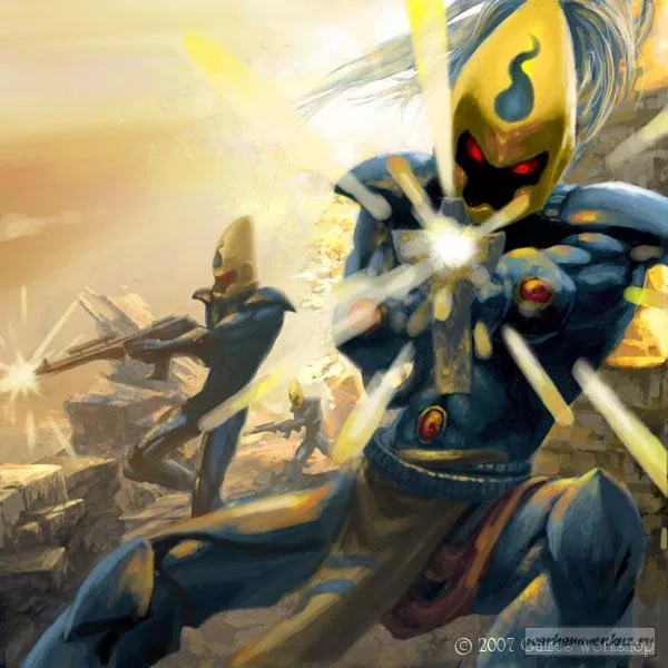 Для танцоров-воителей, арлекинов, нет разницы между искусством и войной. Эти последователи хитроумного божества, известного как Смеющийся Бог, — самые странные и непостижимые из эльдар. Их выдающиеся физические способности в сочетании с невероятной скоростью делают арлекинов самыми смертоносными воинами своего народа. Каждая секунда — представление, и они разыгрывают эти представления с огромным умением, талантом и страстью — своими отличительными чертами на поле боя.